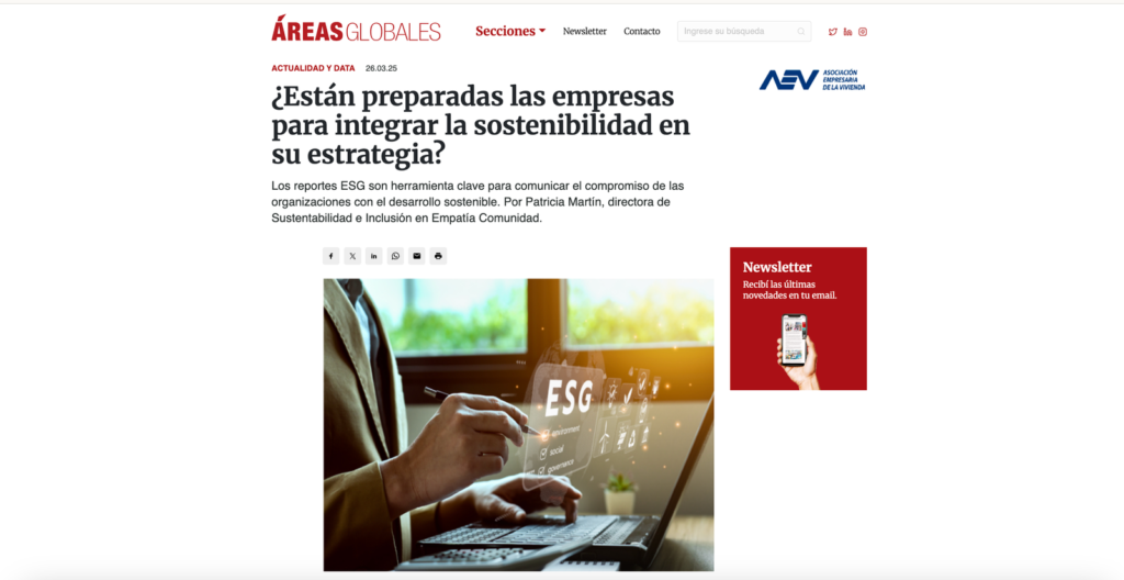 Queremos agradecer a Áreas Globales por darle un espacio a este informe de Repartes ESG realizado por Patricia Martin, Directora de Sustentabilidad e Inclusión en Empatía Comunidad.